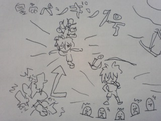 自分的には今回一番よく描けた。吹雪くんのこの必殺技。ってか棒人間だけど。